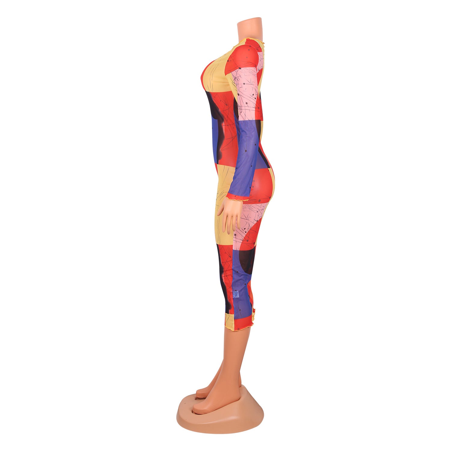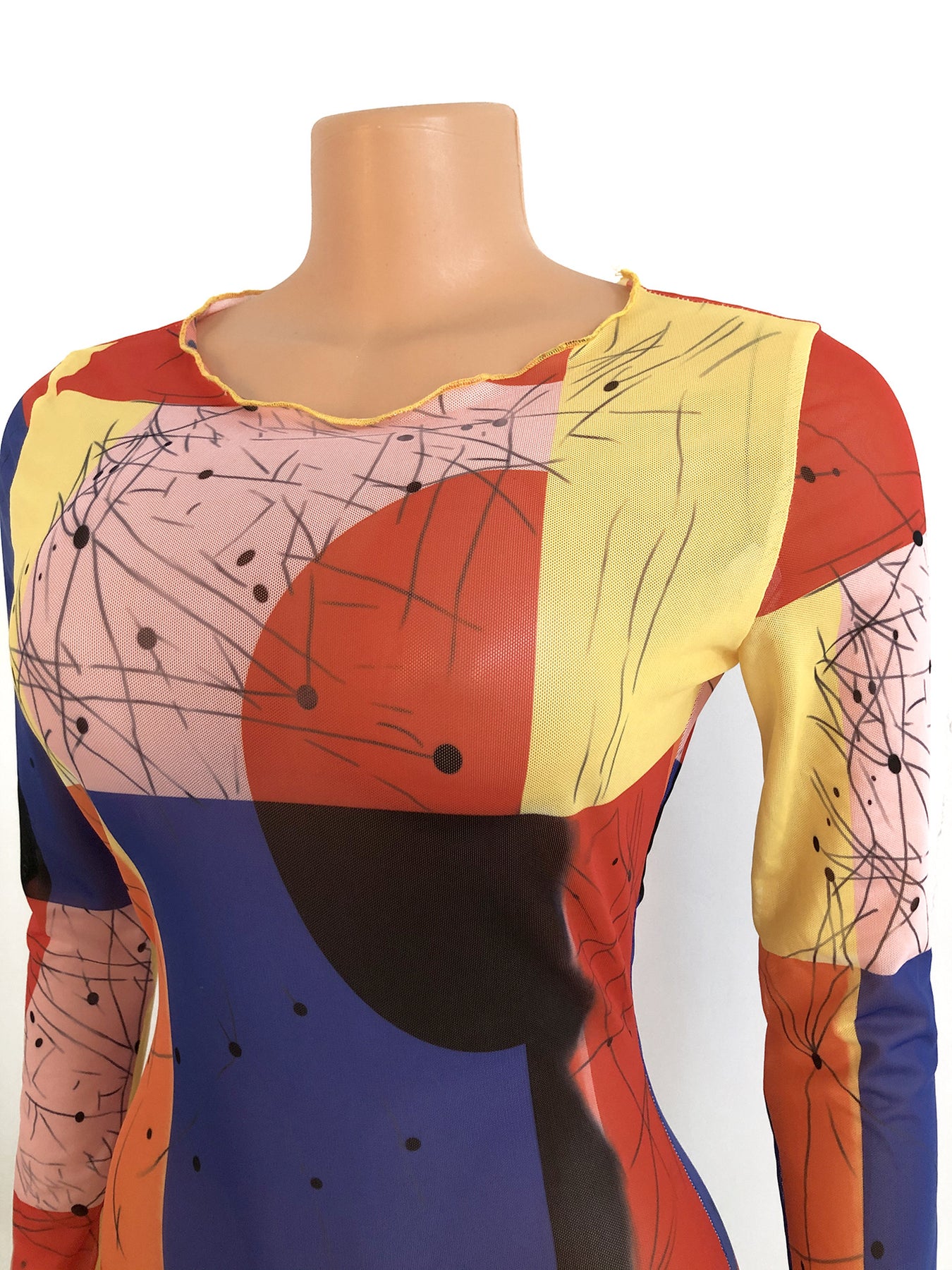 Net Yarn See-Through Digital Printing Long-Sleeved Ladies Midi Skirt