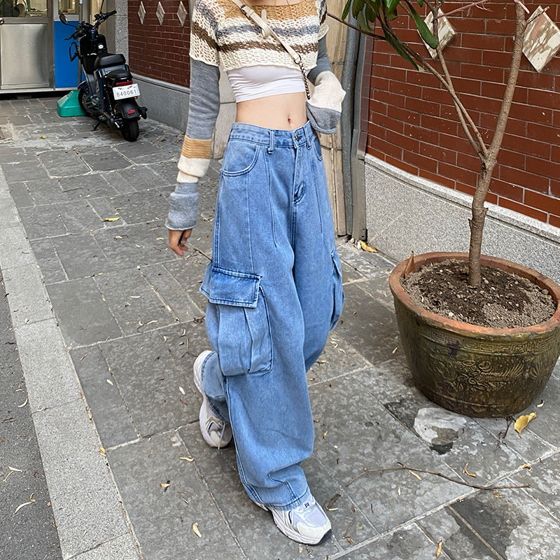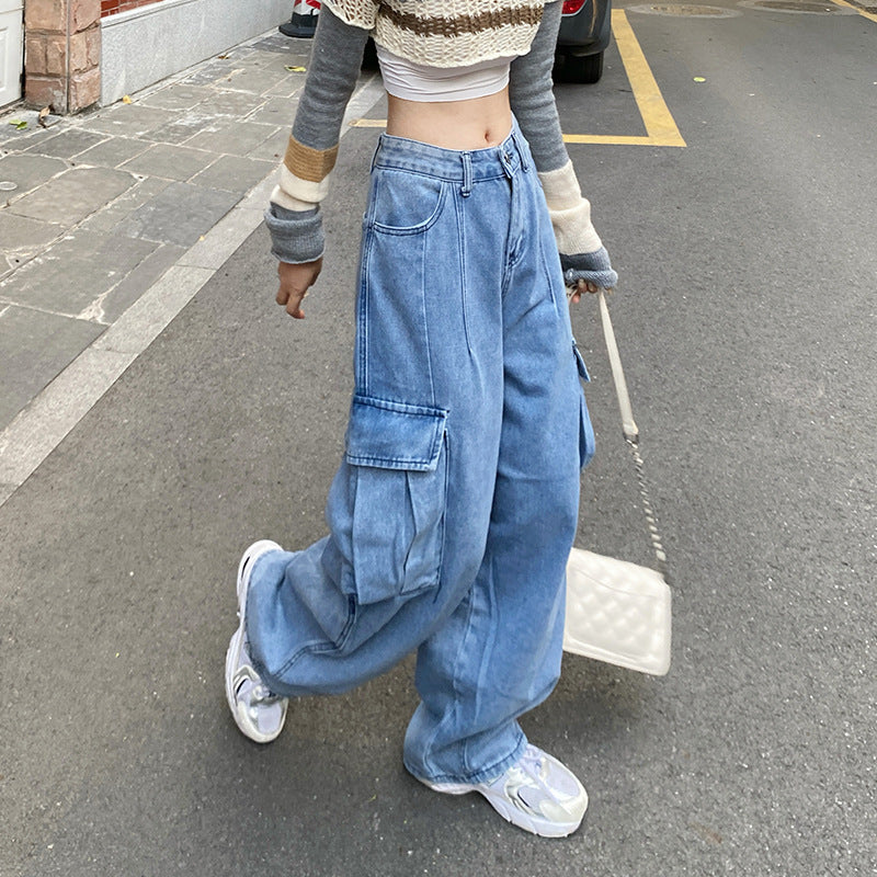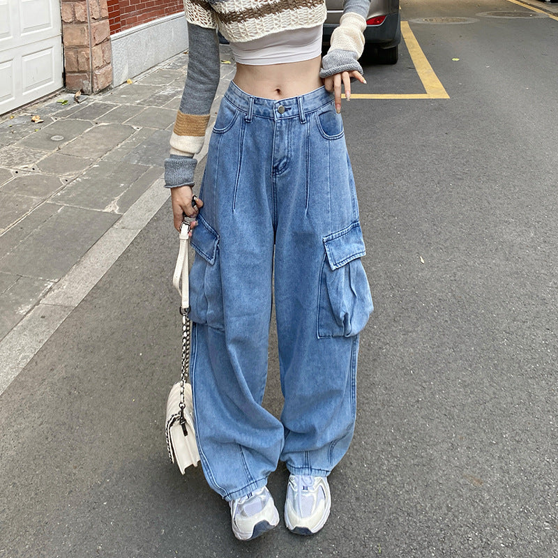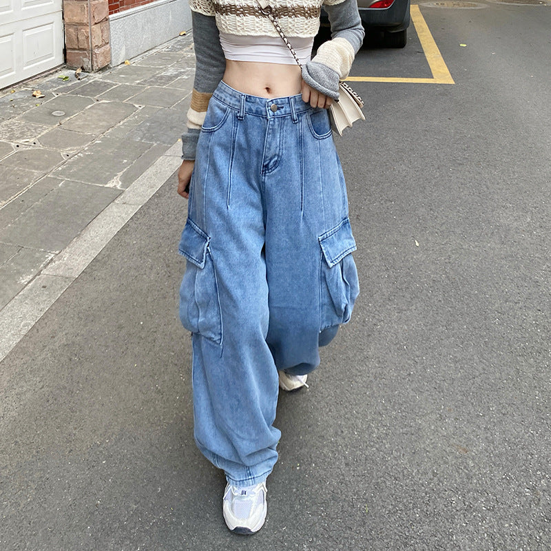 Retro Workwear Denim Women's Straight Loose Wide-leg Pants